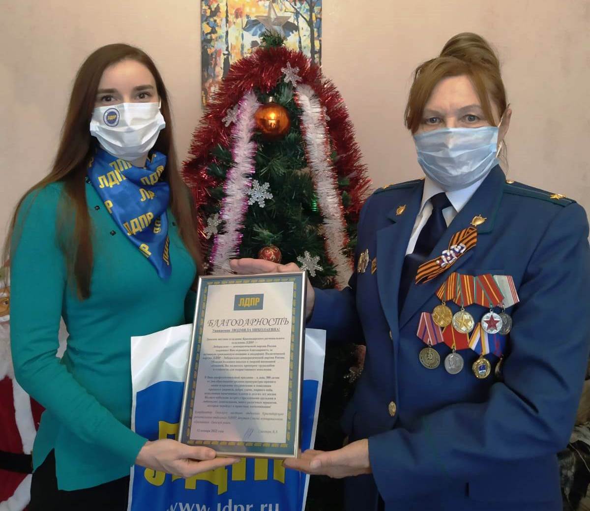 Активисты и молодой депутат ЛДПР в Динском районе Ирина Шубина поздравили с праздником заслуженных работников прокуратуры.
