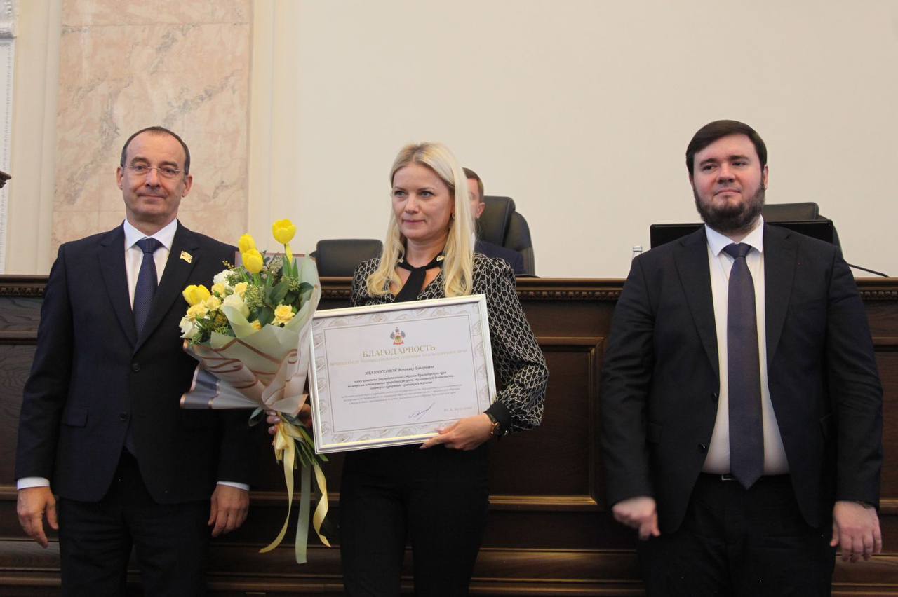 Благодарственным письмом была отмечена депутат от ЛДПР Вероника Иванчикова - член комитета Законодательного Собрания Краснодарского края по вопросам использования природных ресурсов, экологической безопасности, санаторно-курортного комплекса и туризма.