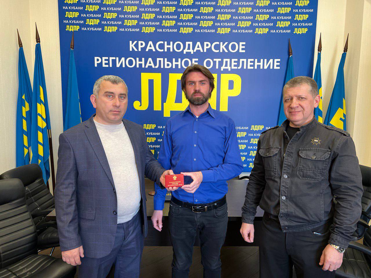 В знак признания активной деятельности и значительного вклада в развитие партийной структуры, от имени руководителя фракции ЛДПР в краевом Заксобрании И.Г. Тутушкина, Кочьяну Ваграму было вручено удостоверение помощника депутата ЗСК на общественных началах.