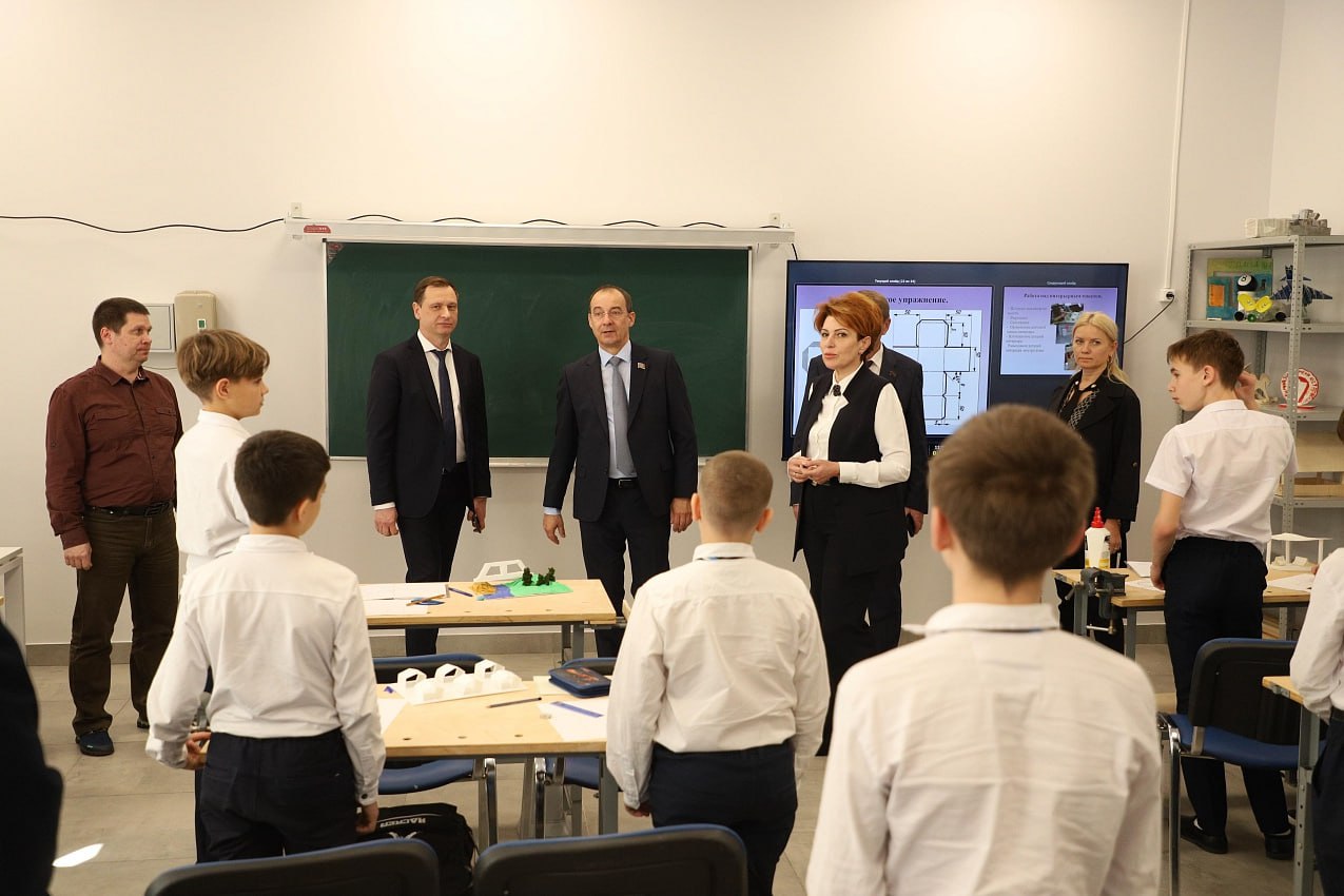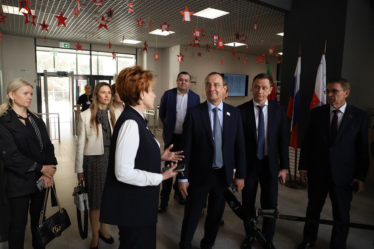 Парламентарии посетили гимназию №9, новый корпус которой рассчитан на 1100 новых мест. Благодаря этому решению городских властей, количество обучающихся во вторую смену уменьшилось до 31%. Проект позволил снизить социальную напряженность в микрорайоне Министерские озера, обеспечив равный доступ к качественному образованию.