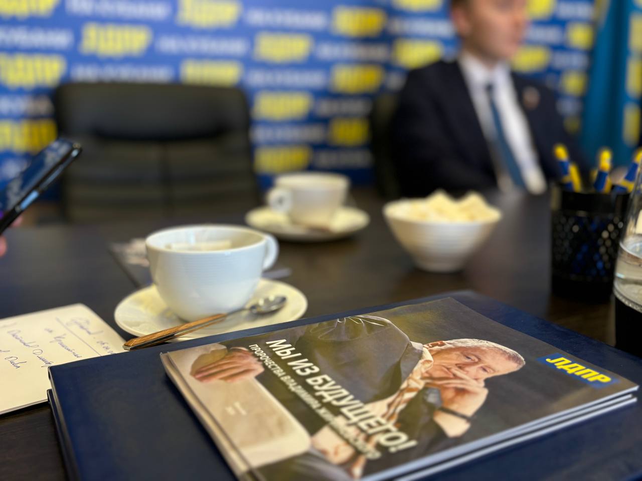 Памятное чаепитие завершилось минутой молчания в память о выдающемся политике и Основателе ЛДПР.