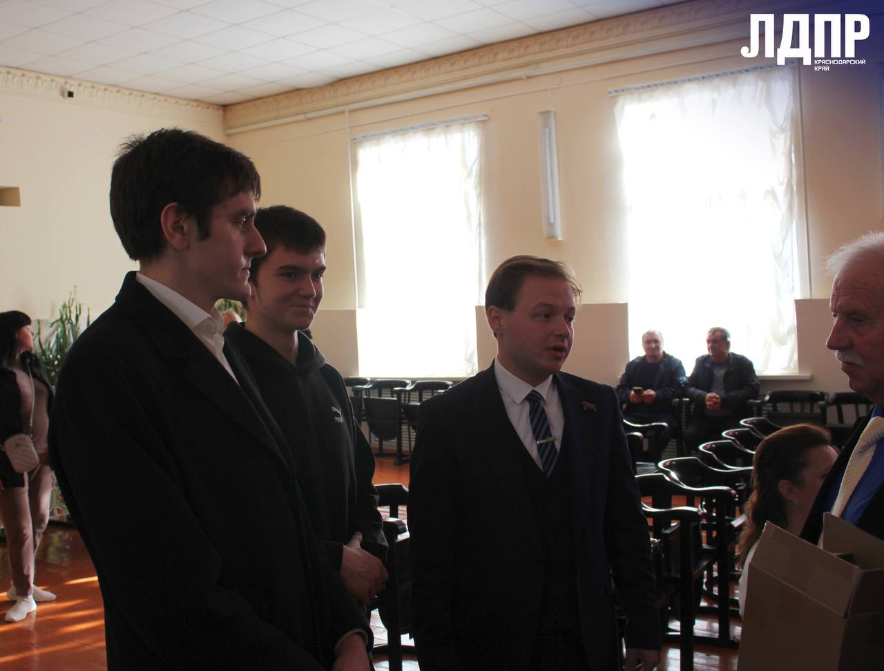 В Калининском районе Краснодарского края продолжается активная работа по военно-патриотическому воспитанию молодежи. Одним из ярких событий стало мероприятие, которое прошло в местном Доме культуры в х. Пригибский. В нем приняли участие депутат Совета муниципального образования Калининского района от ЛДПР Эдуард Бурдасов, представители Краснодарской молодежной организации ЛДПР и местные жители.