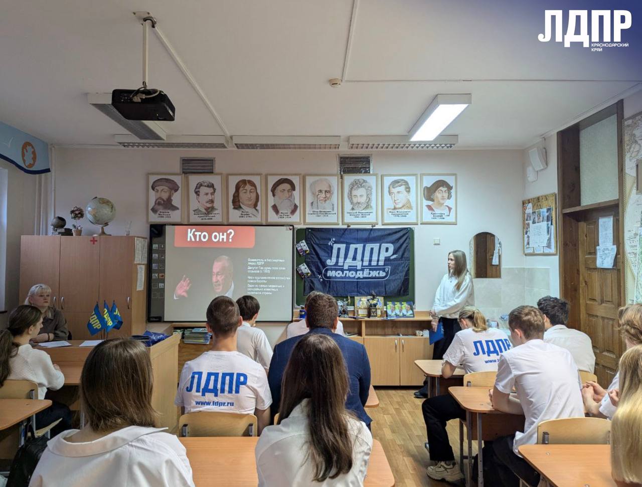 Сегодня в 95 школе города Краснодара прошло особенное мероприятие, приуроченное к 80-летию со дня рождения Владимира Жириновского. Школьники сами предложили рассказать о жизни и деятельности великого политика, истории ЛДПР и ее основателя.