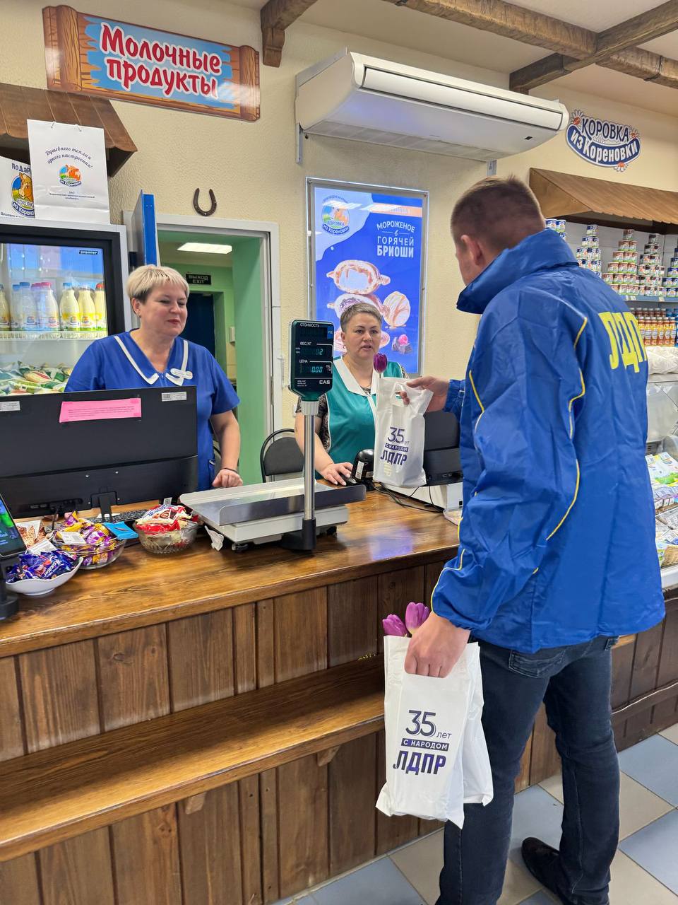 Представители ЛДПР вышли на улицы городов и сел, чтобы подарить женщинам цветы и хорошее настроение.